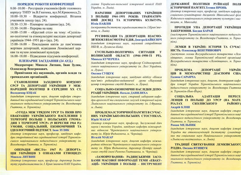 З вітальним словом виступили Богдан Буяк, доктор філософських наук, професор ТНПУ ім. В.Гнатюка, представник міськради Віктор Шумада, декан історичного факультету ТНПУ ім. В.Гнатюка Володимир Місько, який згадав про те, що і його родина була депортована в післявоєнні роки. Микола Литвин повідомив про складні польсько-українські відносини, що існують в теперішній час.