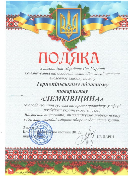 Подяка Ivanna Skliarova 20 грудня 2014 Перегляди: 429 Подяка з нагоди Дня збройних сил України. Facebook Twitter