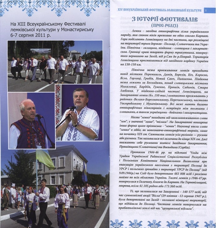 ПРОГРАМА XIV Всеукраїнського фестивалю лемківської культури