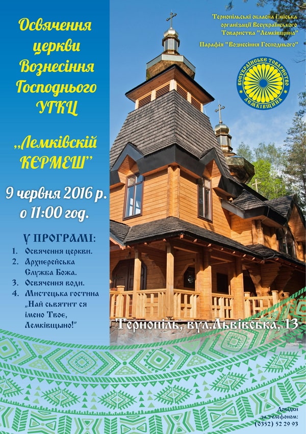Запрошуємо Вас на ОСВЯЧЕННЯ ЦЕРКВИ ВОЗНЕСІННЯ ГОСПОДНЬОГО УГКЦ І "ЛЕМКІВСКІЙ КЄРМЕШ"