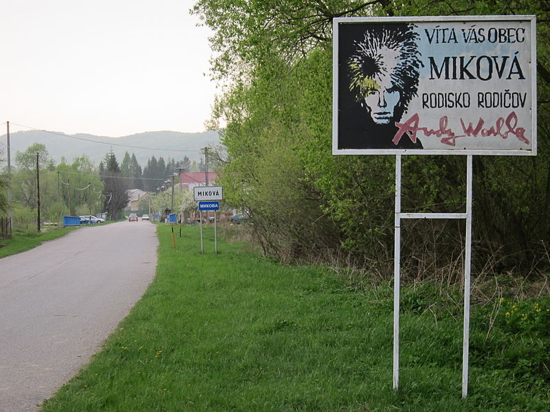 Табличка на в'їзді в село: Вас вітає Микова — батьківщина родини Енді Уорхола.