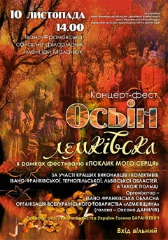 10 листопада в Івано-Франківську пройшов концерт-фест «Осьін лемківска» в рамках фестивалю «Поклик мого серця».