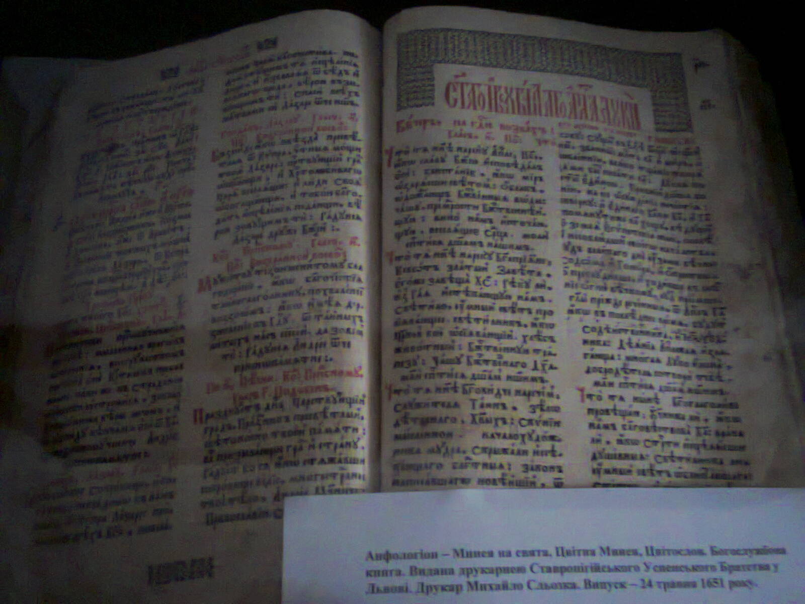 У першому залі зібрано старовинні ікони ХІХ – ХХ століть, церковна вишивка, фотографії видатних діячів церкви, макети церков (автор Орест Гойняк), прихожани яких були переселені в м. Монастириська і Монастириський район.