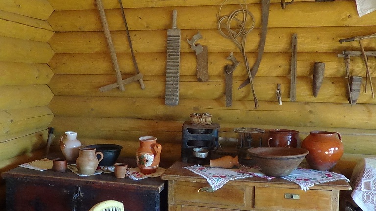 Тут були кращі меблі: шафи, куфри, комоди, психи (дзеркало), креденц, дерев’яне різьблене ліжко, скрині з сімейними реліквіями. Стіни прикрашали ікони та вишивки.